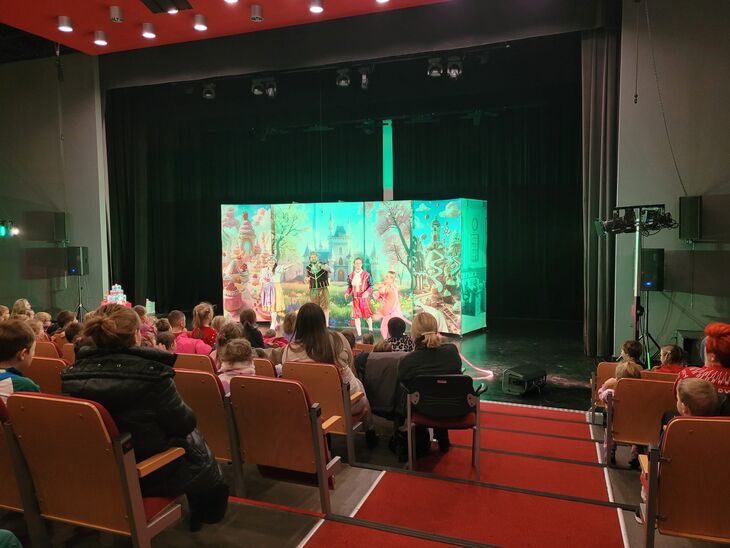 02.12 dzieci z grup: Słoneczka, Gwiazdki i Kropelki uczestniczyły w spektaklu muzycznym pt. "Krolestwo małych serc." w Mrowisku.