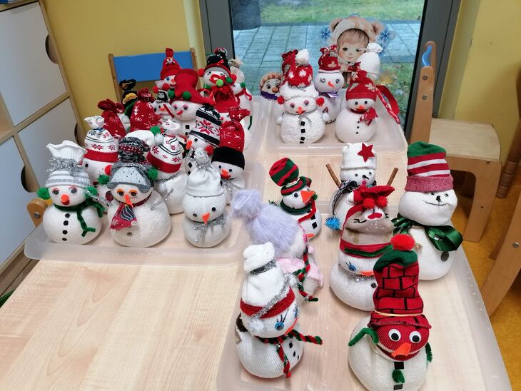 Sala zajęć i zabaw, w której odbywały się warsztaty zamieniła się na moment w pracownię plastyczną, w której działo się wiele ciekawych rzeczy. Rodzice i dzieci w atmosferze kolęd i pastorałek odkrywali swoje talenty plastyczne. Powstało bardzo dużo pięknych i niepowtarzalnych ,,świątecznych bałwanków”. Wspólna twórczość w atmosferze zabawy, zaangażowanie, przeżyte emocje, a co najważniejsze czas, który dzieci spędziły z rodzicami to bardzo cenne doświadczenie dla obu stron. Były to naprawdę mile spędzone chwile, podczas których dzieci i rodzice wspólnie pracowali i jednocześnie świetnie się bawili.