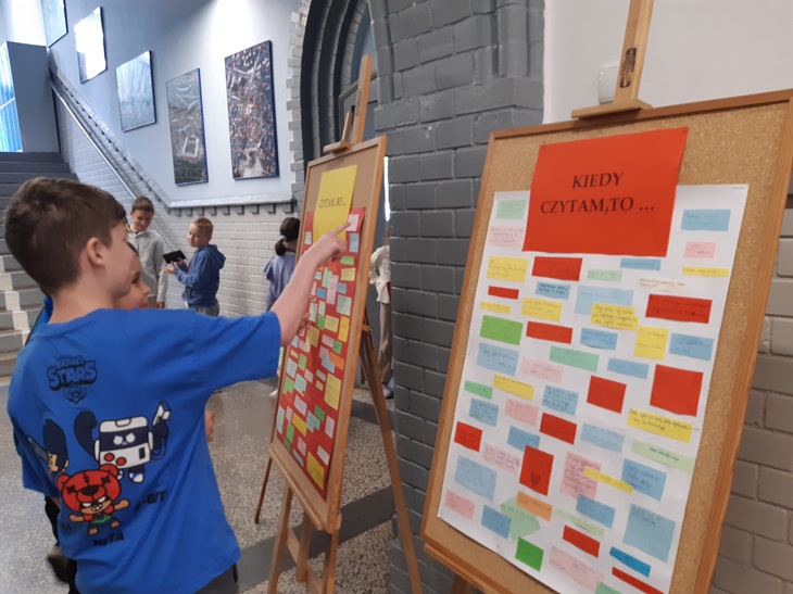 Klasy 1- 3 wykonały piękną okładkę do książki „ Cukierku, ty łobuzie”, czwartoklasiści przygotowali wystawę lektur w pudełku (book in the box). Zainteresowani odkrywaniem tajemnic o książkach, losowali karteczki z ciekawostkami na ich temat. Uczniowie podzielili się również spostrzeżeniami na temat czytania (Czytam, bo...; Kiedy czytam, to...; Książki sprawiają, że...). Odpowiedzi znajdziecie na plakatach, które powstały podczas tygodnia czytania. Zapoznajcie się z nimi i biegnijcie do biblioteki. Czytajcie wartościowe książki, by budować dobre relacje!